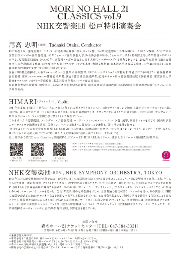 森のホール21 CLASSICS vol.9 NHK交響楽団 松戸特別演奏会